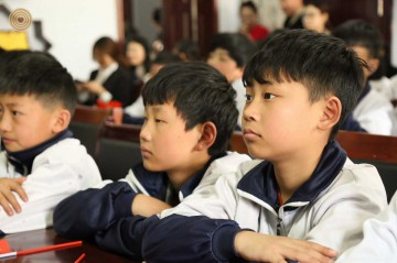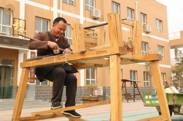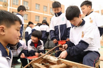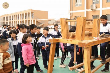 Four traditional wood turning masters Mr. Guo Qingxun, Mr. Li Zhanghe, Mr. Li Xuemin and Mr. Li Xianqi are from Guangping County and Feixiang County of Hebei Province. They are the inheritors of traditional wood turning skills under the list of intangible cultural heritage in China. They performed their unique techniques on traditional big and small lathes. While turning, they patiently explained the key points of the skills to the students and taught them how to operate. They also brought some of their works to school which made the children full of surprise and excitement about the old craftsmanship.